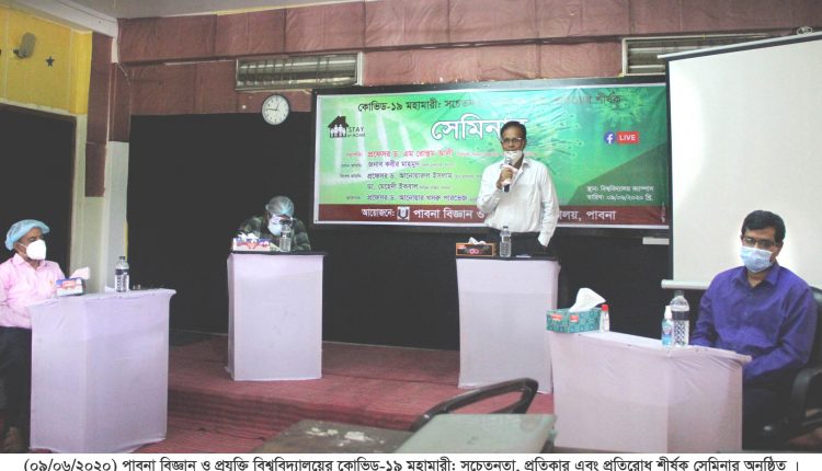 বিশ্ববিদ্যালয়ের গ্যালারী-২ সেমিনারে উপাচার্য প্রফেসর ড. এম রোস্তম আলীর সভাপতিত্বে প্রধান অতিথি জেলা প্রশাসক কবীর মাহমুদ আরো বলেন, মূলত ঈদের মধ্যে পাবনায় সংক্রমন বেড়েছে। পুলিশ, স্বাস্থ্যকর্মীসহ বিভিন্ন পেশার মানুষ আক্রান্ত হয়েছে। পাবনায় সদর উপজেলা বেশি আক্রান্ত। জেলা প্রশাসন নয়টি লাশ দাফন করেছে। আমাদের সবার মানবিক হতে হবে। জীবন ও জীবিকার যুদ্ধে সকলের সহযোগিতা দরকার। বিশ্ববিদ্যালয়ের ছাত্র-ছাত্রীদের জন্য মেস ভাড়া ৪০ শতাংশ কমানো হয়েছে। মানুষের যাতে কোন সমস্যা না হয় সেজন্য এক ইঞ্চি জায়গাও আমরা পতিত রাখবো না। পাবনা জেলায় পরিবেশ বান্ধব ২৩ হাজার বট গাছ লাগানো হবে বলে তিনি জানান।