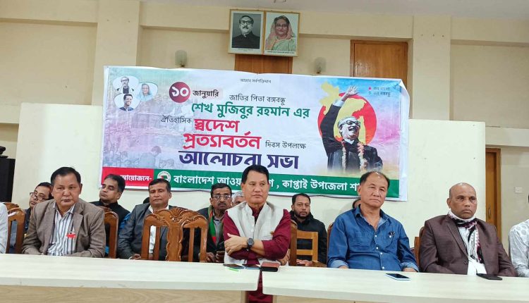 ঐতিহাসিক স্বদেশ প্রত্যাবর্তন দিবসে কাপ্তাইয়ে বঙ্গবন্ধুর প্রতিকৃতিতে ফুলের শ্রদ্ধা ও আলোচনা সভা অনুষ্ঠিত হয়েছে
