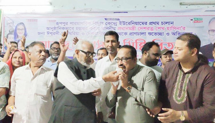 ঈশ্বরদীতে এমপি নুরুজ্জামান বিশ্বাসের আনন্দ-উল্লাস ও মিষ্টি বিতরণ