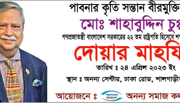 পাবনা প্রতিনিধি: পাবনার কৃতি সন্তান বীর মুক্তিযোদ্ধা মো. সাহাবুদ্দিন চুপ্পুকে ২২ তম রাষ্ট্রপতি হিসাবে শপথ গ্রহণ করায় অনন্য সমাজ কল্যাণ সংস্থার আয়োজনে সর্বস্তরের মানুষের মাঝে মিষ্টি বিতরণ ও দোয়া মাহফিল অনুষ্ঠিত হয়েছে।